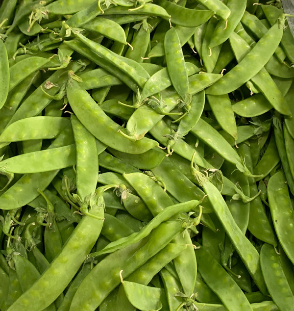 Snow peas, also known as Chinese sugar peas, are immature pea pods in the legume family vegetables, commonly featuring in the stir-fried dishes.
